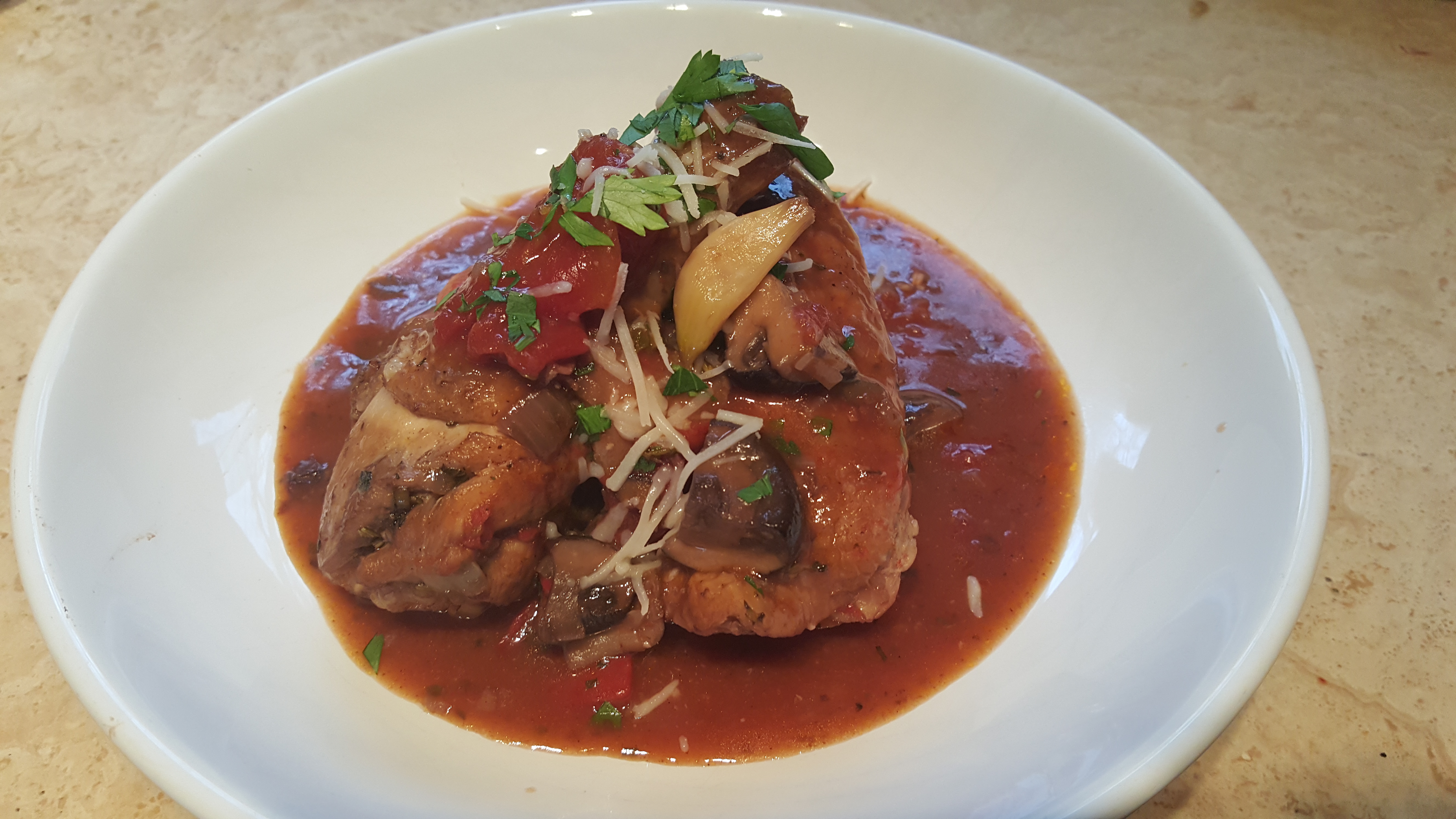 - Let the shishito peppers cool, just enough so you can handle them. Take 2-3 oz. of the peppers, pull the stems, and give them a decent chop it doesn’t’ have to be perfect. The rest are taking the place of celery and carrots on the wing plate.