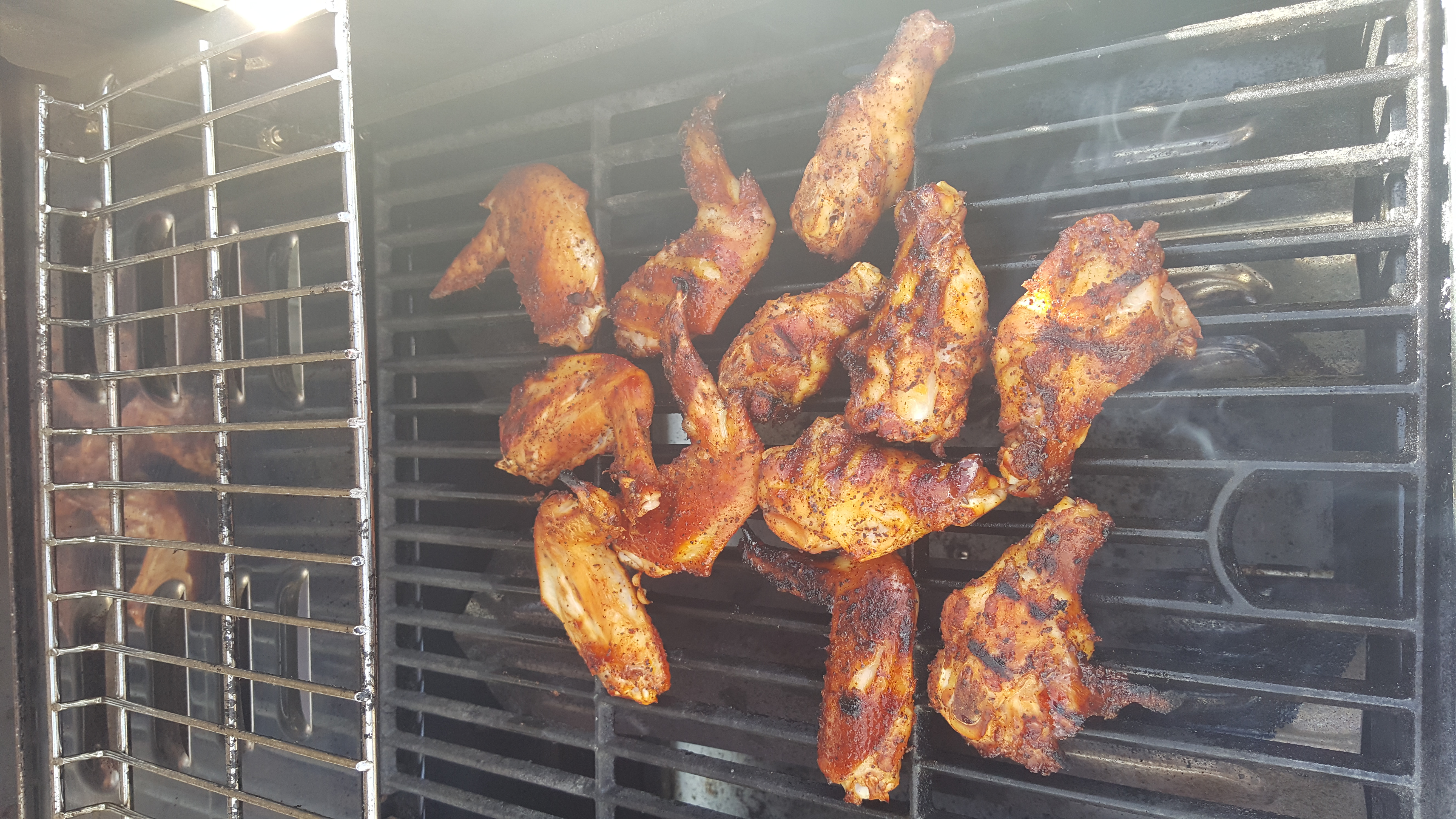 So, I know what you’re thinking…”What if I don’t haev a smoker?” That’s easy. you can still do them all on the grill, just add 1 tbsp. of liquid smoke to the rub, and let them sit about an hour. No harm no foul. “Isn’t’ liquid smoke a chemical?” That depends. Read the labels. Liquid smoke SHOULD just literally be smoked water. Some brands are chemical flavors, but the label will tell you what it in it. WING UP!!!