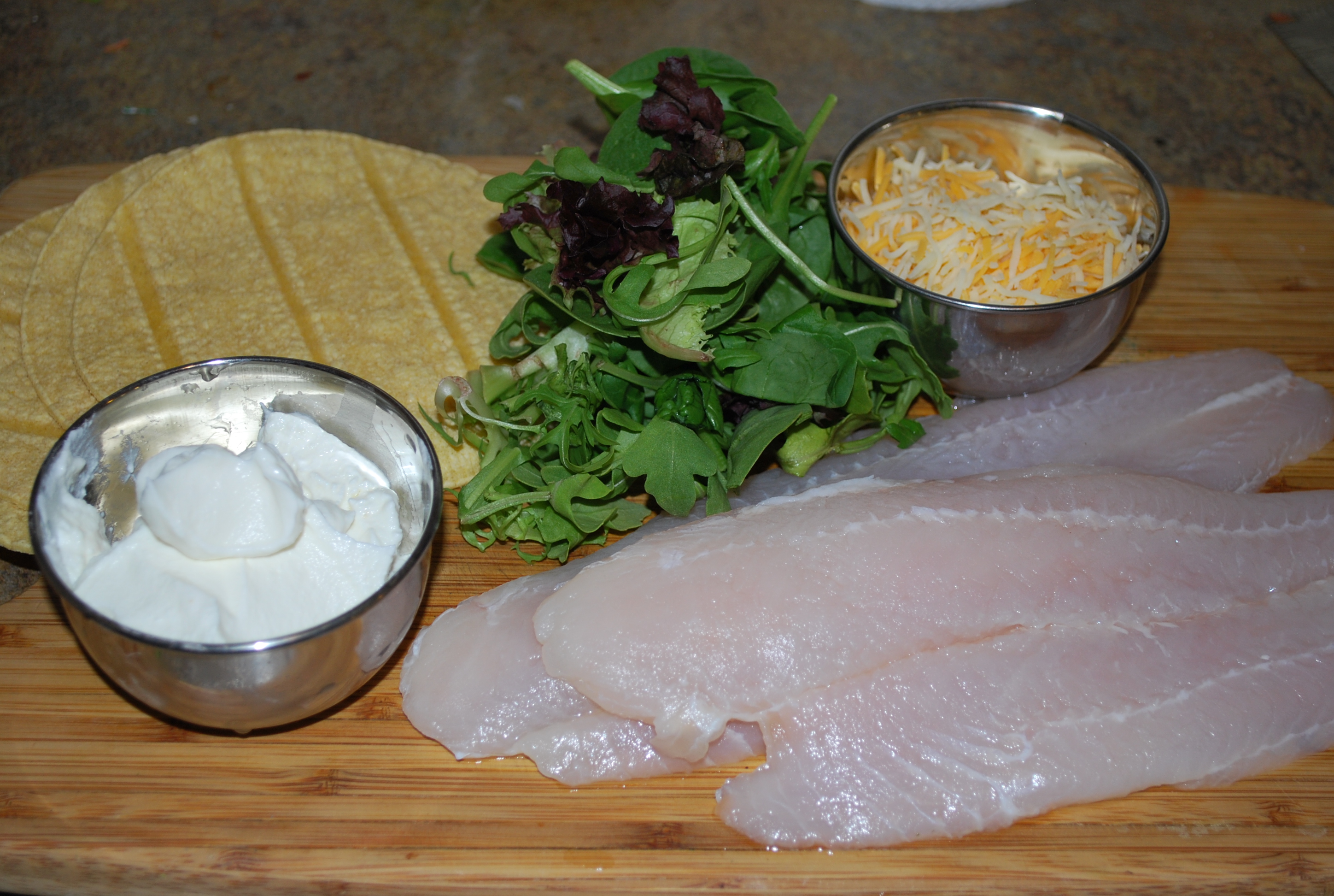 Well, any kind of fish really, but where I live, the catfish is plentiful, delicious and incredibly popular. This recipe is a fan favorite at cookouts, and it’s so simple, and very healthy. (Don’t worry you can fry the fish too after it’s been in the marinade, I’m not backin’ out of you). I love to use good old fashioned soft corn tortillas with these, there’s just something about the authenticity Of course instead of plain old lettuce and tomato, I used pico de gallo and baby greens. Did someone say avocado? DUH!!!!!! Here’s what I use to make four portions: