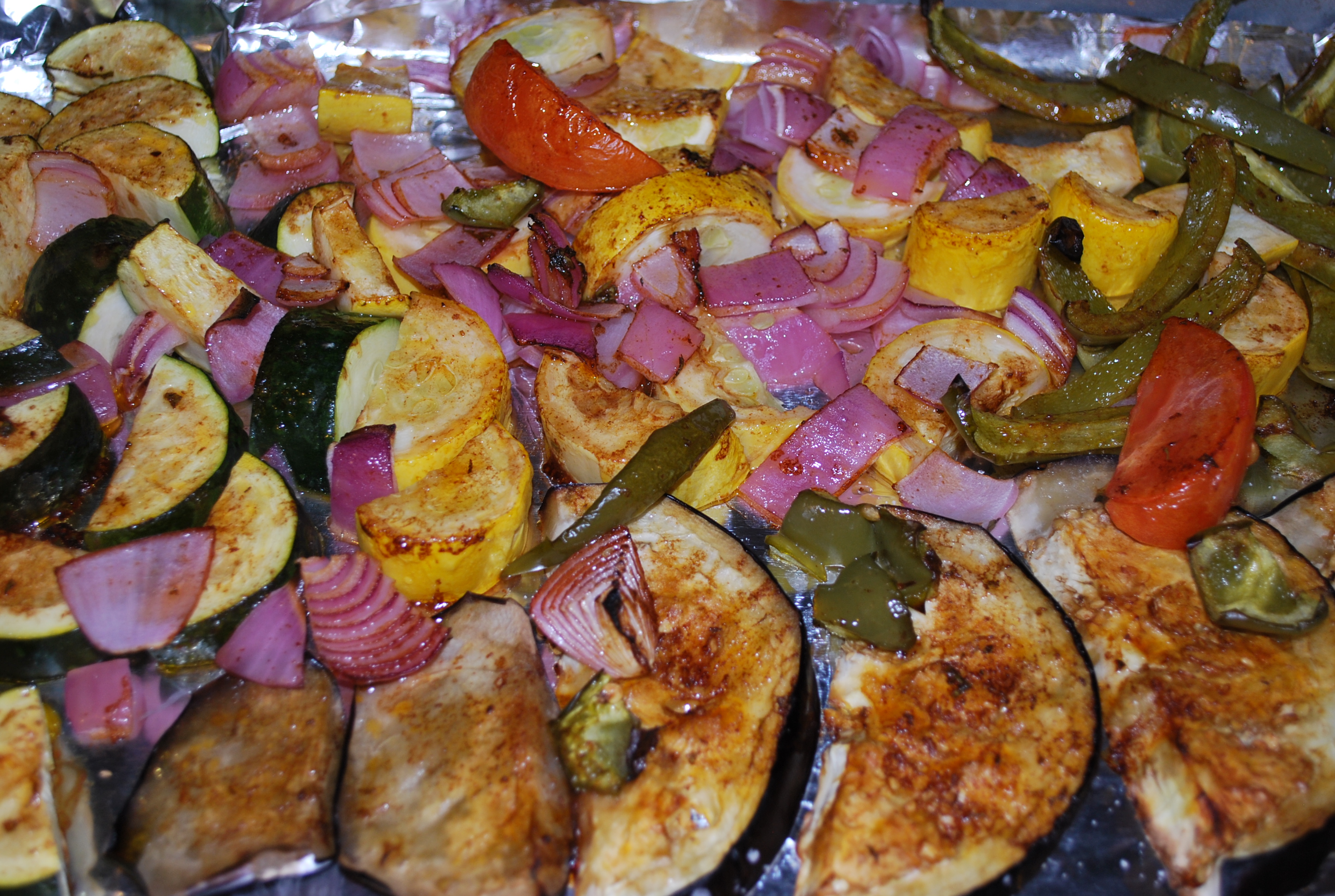 - Roast your vegetable for about 20-30 minutes. Brush them about half way through with more of the dressing. Once they come out, let them cool for about 10 minutes.