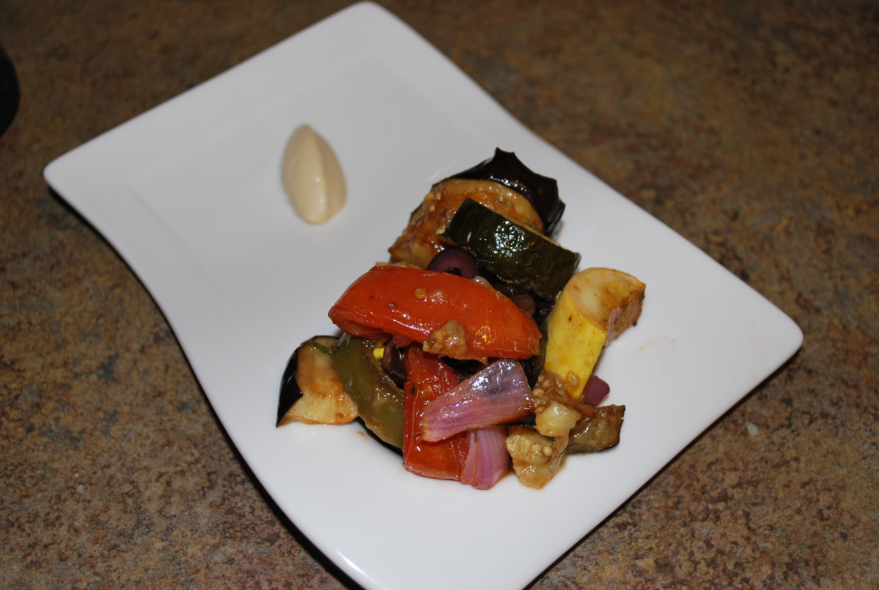 I feel kinda bad for the eggplant. It’s not really a well liked vegetable, it just kinda sits there all unassuming in the grocery store, just knowing no one’s going to buy it. Just kinda there. Don’t’ worry big round purple buddy, I’m here for you. I’ve got a recipe that’ll get people buying you. It’s a simple salad you can server warm or cold, or even can and preserve. This is another recipe I learned from that gentleman in Auburn, AL from Ariccia, Italy who served the ridiculously delicious porchetta (yes I know that recipe is coming too). While it’s not traditional caponata, he used the equipment he had (a BIG oven) and vegetables from the University farm to make it, so you know it was good. This recipe will make ALOT (like a few days worth) so I like to do it for parties then can some myself and save it for later.